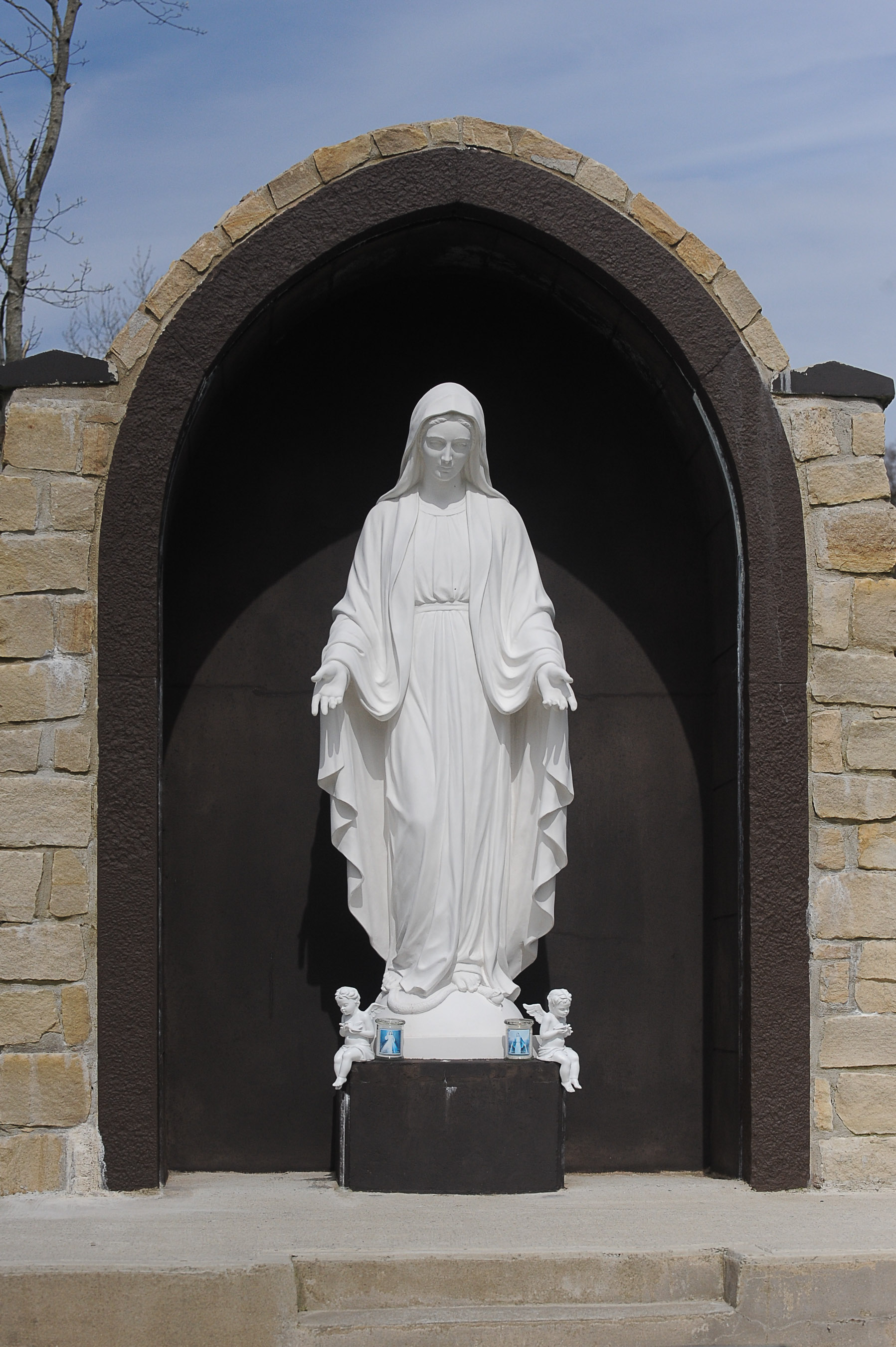 Image of Our Lady of Perpetual Succour surrounded by white Carara Marble angels.